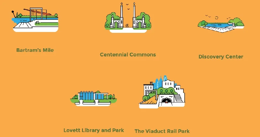 In March of 2015 it was announced that the Knight and William Penn Foundations were collaborating with the Fairmount Park Conservancy on their ambitious "Reimagining the City Commons" initiative. Currently underway, the $11,000,000 project will attempt to answer the question of whether or not civic places such as libraries, parks, and community centers can "promote greater social and economic integration, retain residents, and foster community and economic development" within Philly. More importantly perhaps, this project pays tribute to William Penn's original civic vision of Philadelphia as a "greene country towne" by properly utilizing public spaces that are currently languishing. You are already well aware of the Viaduct Rail Park portion of this undertaking, but the four other model projects that make up the City Commons project are also intriguing: Bartram's Mile aims to bring bike and pedestrian trails to Bartram's Garden, making the area into a welcoming neighborhood public space; Centennial Commons will add recreational spaces to the edge of West Fairmount Park; Discovery Center, a collaboration between the Philadelphia Outward Bound School and the National Audubon Society, will revitalize an abandoned reservoir in East Fairmount Park into a spot for educational and environmental programs; and Lovett Library and Park aspires to transform the location into a new community center. The unifying thread that ties all of these projects together is a belief that they can all help make Philadelphia a stronger, more desirable, and more community-driven place to live. If all goes to plan, the lessons learned in this pilot program will be implemented in other cities-- further illustrating how prescient Penn's ideals were.