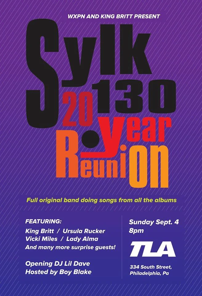 To mark Sylk130’s 20th anniversary, Britt has gotten the old crew back together again for a double-fisted party: Full band show at the TLA, followed by a Back2Basics reunion at their old haunt, Silk City.